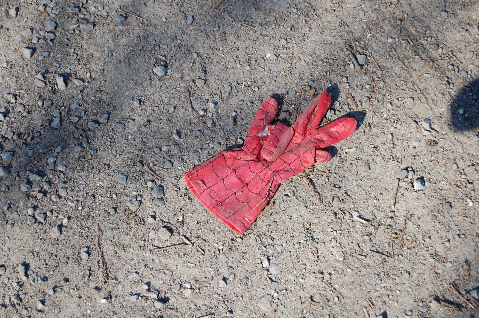 Jag tor att Spindelmannen bor i Tyskland, för jag hittade hans handske. Eller är det så att han har blivit ett fan av Micheal Jackson och kastat den ena handsken?